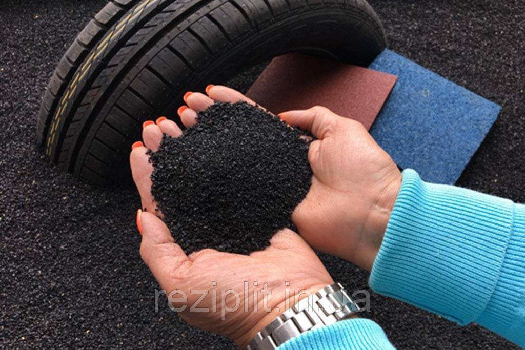При виготовленні травмобезпечної плитки товщиною 30 і 40 мм використовуються два види крихти. Фракція 1-3 мм йде на зносостійкий верхній шар, який фарбується барвниками. А гумові гранули розміром 3-5 мм використовуються у виготовленні більш еластичного амортизую чого шару.