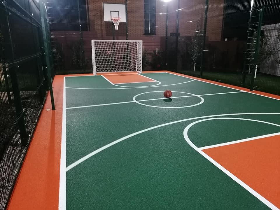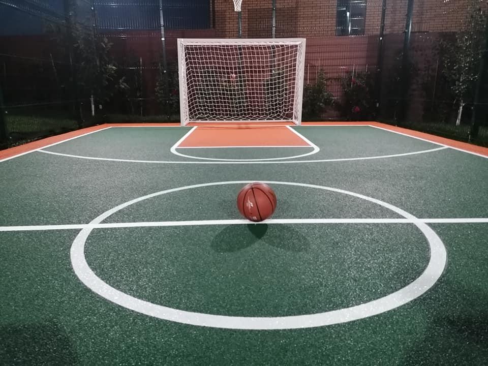 Будівництво "під ключ" спортивного майданчика у подвір'ї приватного будинку із спортивним покриттям Conipur 2S.